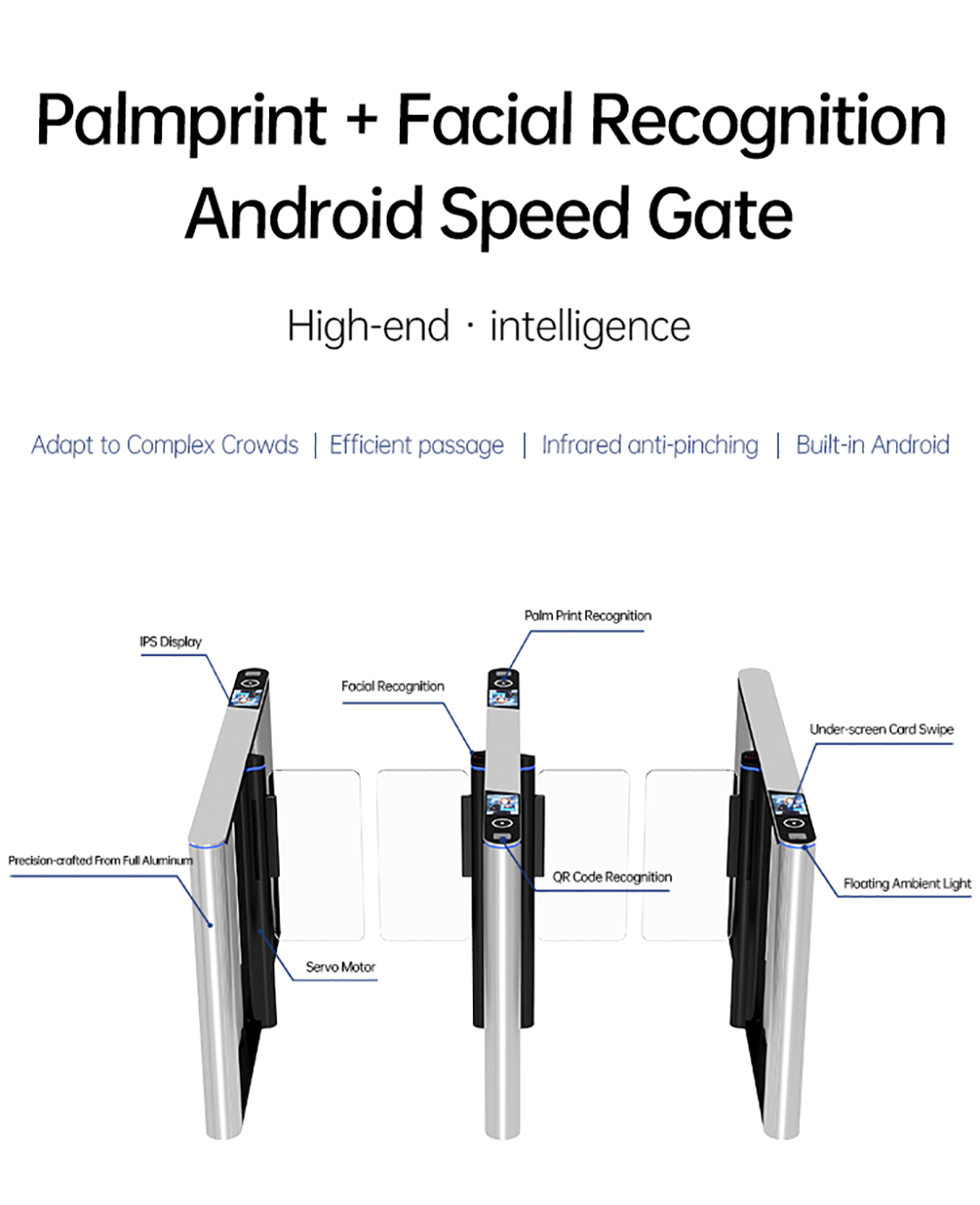 Super Slim Speed Gate with Palmprint Face Recogintion RFID Card Controller